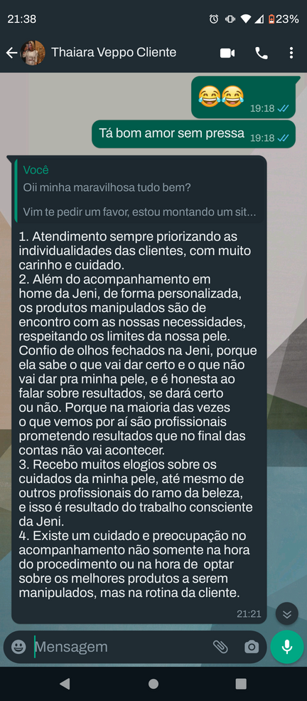 E com essa tranquilidade, vou alinhando pontos e entendendo suas necessidades!